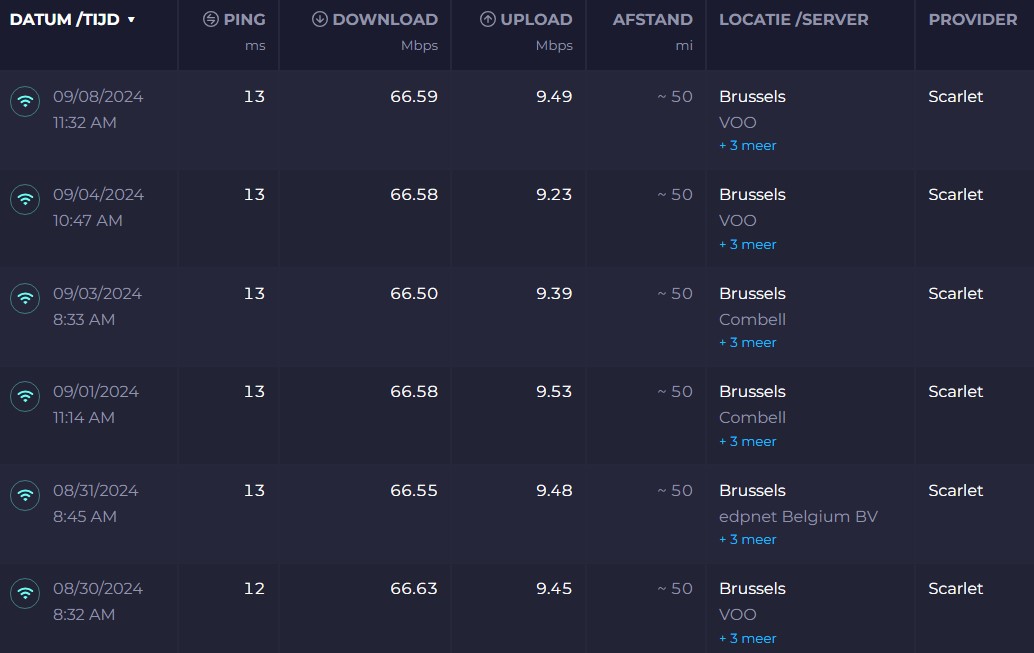 Gebruik altijd dezelfde speedtest, nl deze van ookla dit om toch een overzicht te hebben altijd dezelfde zijn hier ook nog mensen die ookla gebruiken??