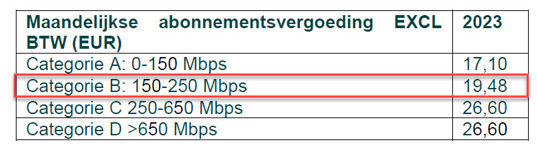 Momenteel zitten ze in klasse A, mochten ze hoger dan 150mbit willen aanbieden komen ze in klasse B wat een meerkost is voor hun.