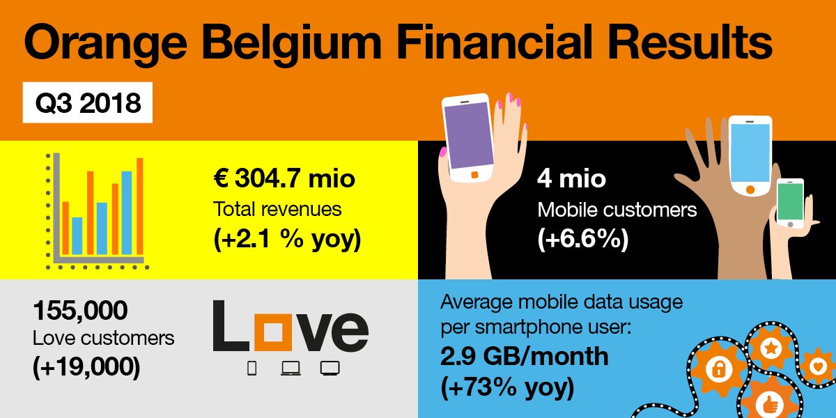 De LOVE-bundel, die Orange Belgium lanceerde in 2016, heeft al 155.000 klanten. In het derde kwartaal kwamen er netto 19.000 nieuwe klanten bij. Dat zijn er maar licht meer dan het cijfer waar analisten van uitgingen (17.000). De bundel blijft bovendien verlieslatend, maar Orange weet dat licht terug te dringen (van 5,2 miljoen euro in het derde kwartaal van 2017, naar 4,3 miljoen euro nu.) Is het 'on-topic', Giolovin?