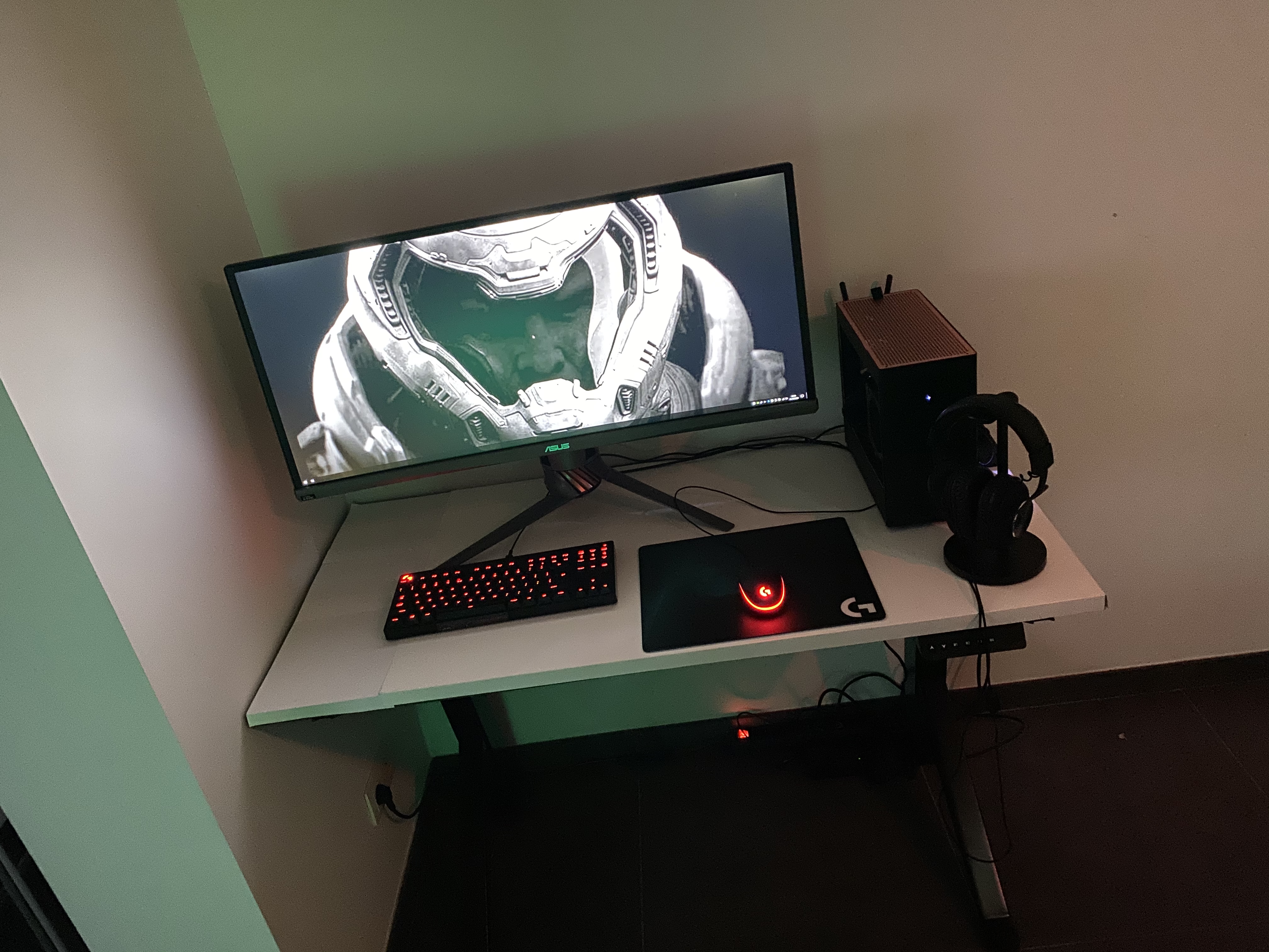 Omdat het binnenkort Doom Eternal is, en ik van plan ben om dat spel een lange periode veel te spelen en herspelen, de game setup maar naar beneden verhuisd, zo zit ik dichter bij de vrouw die dan TV kijkt...