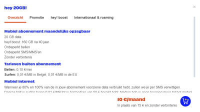 Een paar maanden geleden wou ik van de 7 euro naar de 10 euro Hey, en kon die promo niet krijgen (zou 15 moeten betalen), enkel als ik eerst naar een andere provider zou gaan en terugkomen zeiden ze in de chat...