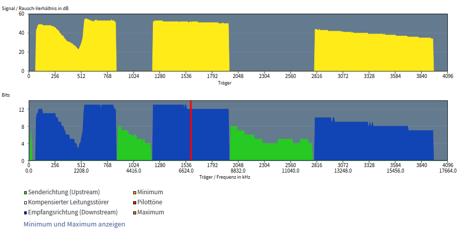 Dan krijg je zowel bij upload en download het maximum dat je lijn aankan (met een target SNR van 6dB).