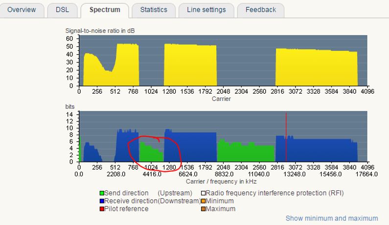 Deze gebruikers zou ik dus wel aanraden om hun FritzBox eens op "Annex A" te proberen. Een kleine verbetering van de upload capaciteit is misschien genoeg om uit de "grijze zone" te geraken!- last but not least: nu begrijp ik eindelijk waarom B-box3 gebruikers een betere vectoring upload waarde zien dan FritzBoxen. Het zou mij niet verwonderen, dat de B-box3 gewoon op Annex A synct, en dus maximaal de beschikbare frequenties gebruikt.
