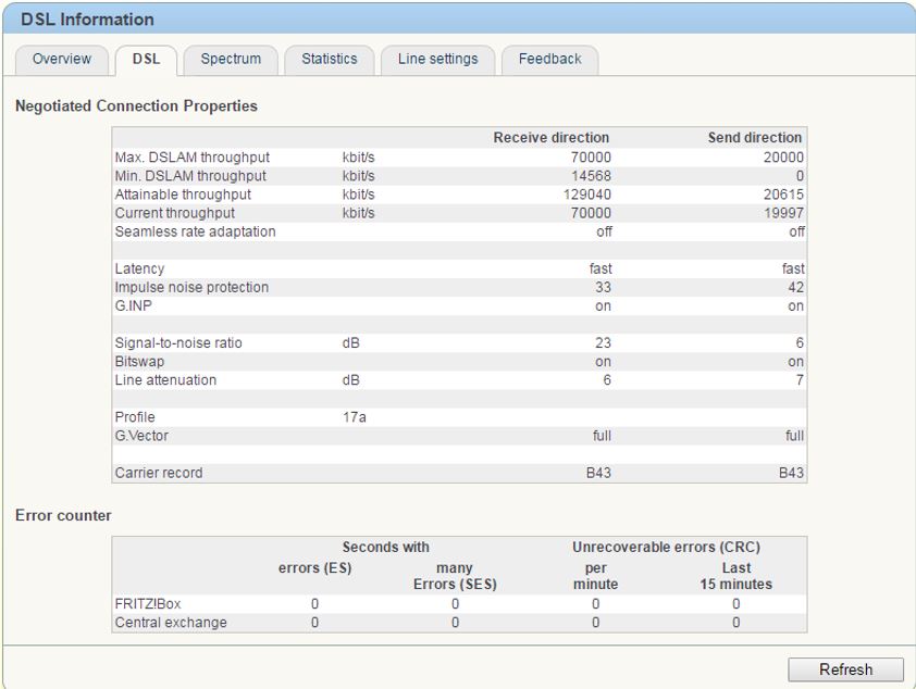 Het is me opgevallen door de vele lijnwaarden posts van Fritzbox users, dat steeds vaker de upstream waardes een beperking vormen in vergelijking met de downstream waardes. Een lijn kan bijvoorbeeld nog ruime marges hebben aan de downstream kant (bv. 13dB SNR) terwijl de upstream kant al op de limit van syncloss zit (bv 6db SNR). Dit zie ik sinds vectoring steeds meer voorbij komen.