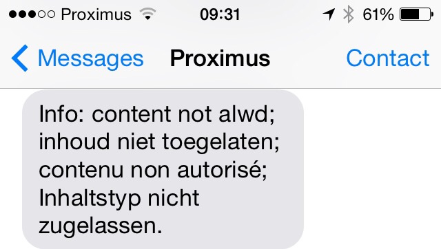 - Gebruikers met een nieuw Proximus abonnement, of die hun nummer na enkele jaren terug van Base/Mobi naar Proximus porteren, krijgen plots ongevraagd deze sms'sen.