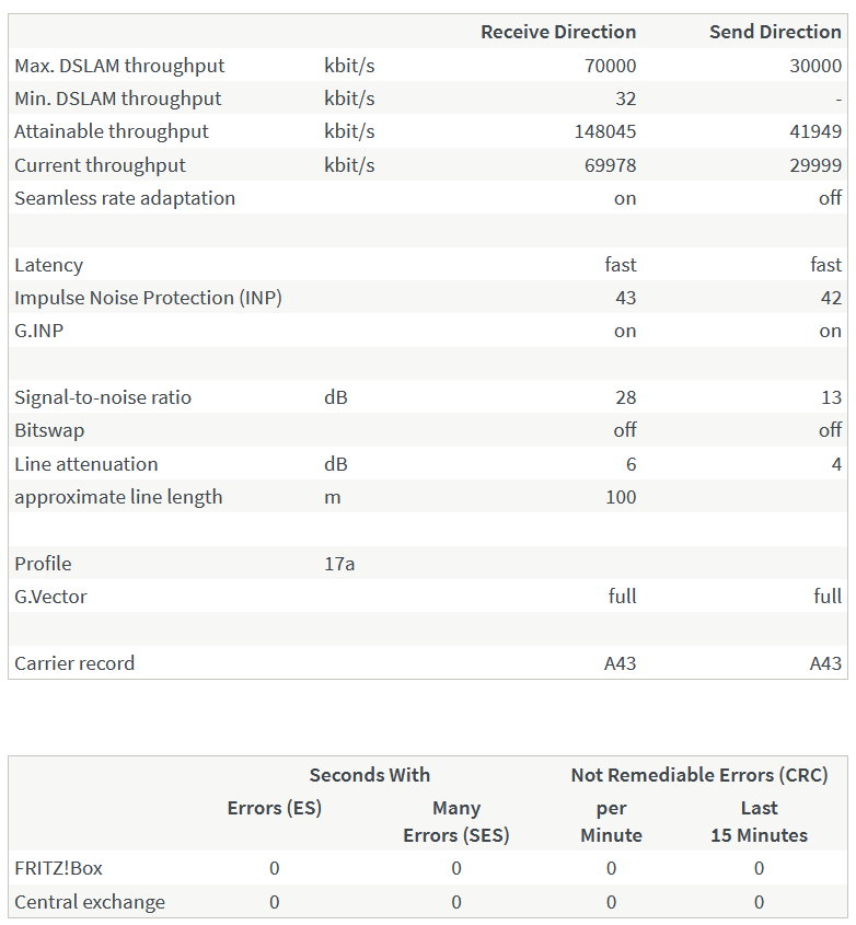 Ik zag wel dat de receive direction begon in de 68xxx kbit/s regio en nu is opgeklommen naar 699xx kbit/s