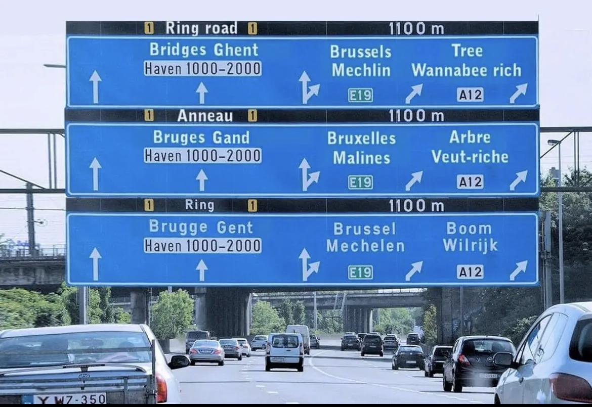 Je kan niet alle steden deftig vertalen hé, Brugge zou Ponts moeten worden in 't Frans