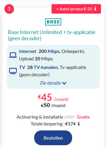 De limited zou ik ook kunnen kiezen, maar wil die 5 €/maand niet extra betalen voor hun verouderde 'TV-box' en dan val je op 50/5 (DL is goed, upload ook wat traag). Maar eigenlijk wel fantastisch aanbod 26 € voor internet 300 GB limiet en 50/5 (met decoder die niet telt voor limiet). Zelf bij Mixtus zou je 40 € betalen (voor zolang het duurt daar). Had tvkijken via eigen streamer ook niet voor datalimiet geteld, nam ik zeker de limited. En moest snelheid echt tegenvallen, kan je altijd verhogen, bij de VDSL operatoren kan je dit niet. (of toch niet zonder kost)