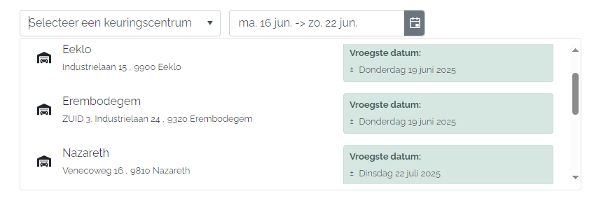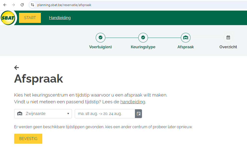 We loggen in, en maakt niet, maar geen enkel keuringsstation kan een afspraak maken in Oost-Vlaanderen.