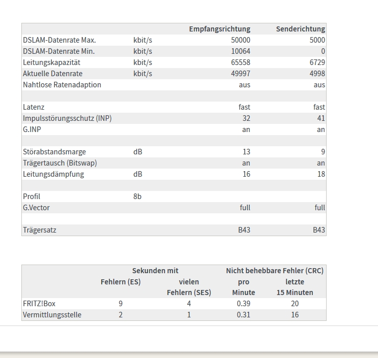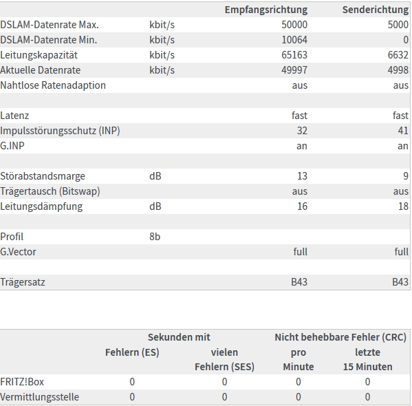 Nach einiger Zeit gab es mehrmals am Tag Sync Verlust da viele Fehler in der Box zu sehen waren und meine Leitung wurde wieder auf 30.000 runter gesetzt.