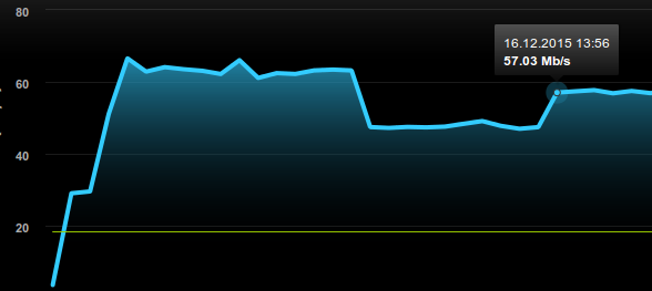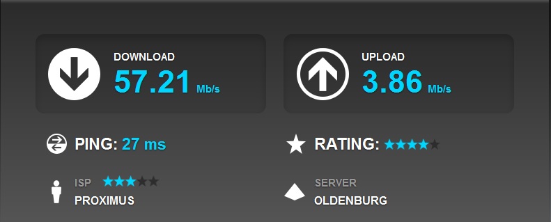 Op deze snelheid blijf ik voorlopig hangen. Wel zit de Fritzbox er ondertussen achter (ik heb mijn netwerk, VOIP, etc. terug aangesloten)
