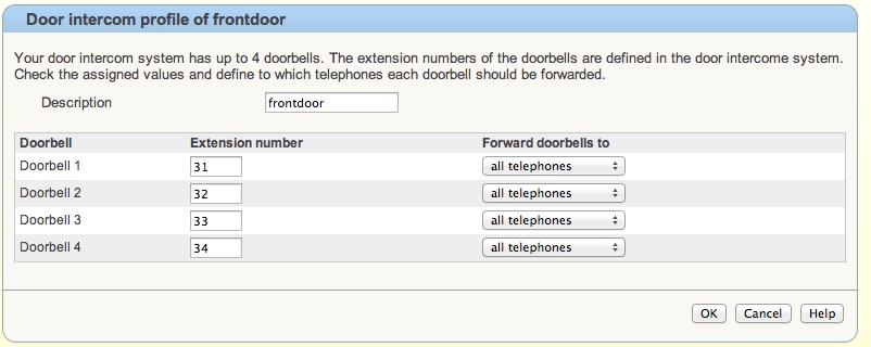 Het systeem met call diversion lukt niet als je "Calls to a telephone" instelt: de deurtelefoon gedraagt zich als een intern toestel dat zelfs niet opgeroepen kan worden van buitenaf.