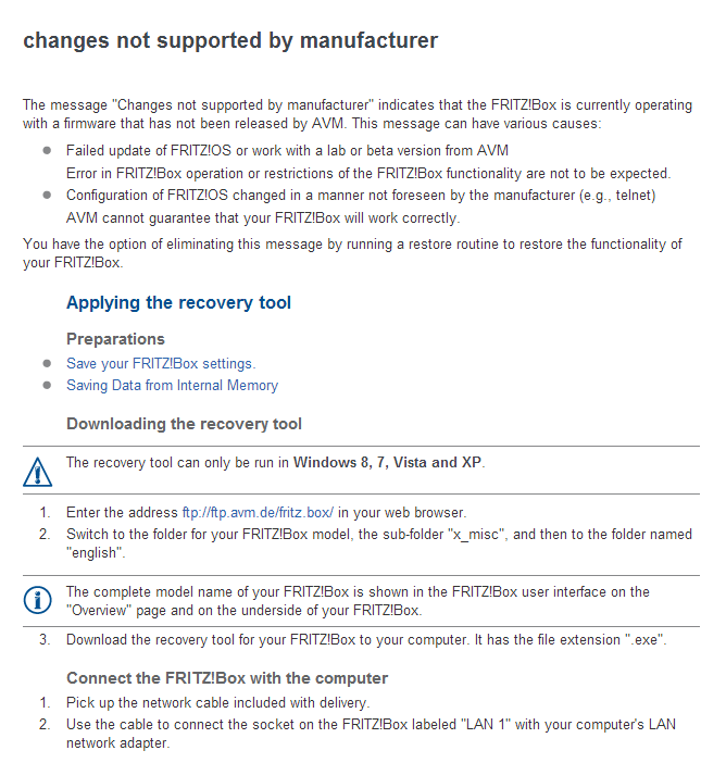 Op een tweedehands Fritbox 7360 vind ik op de gebruikelijke plaats niet de mogelijkheden om dyndns en vpn te configureren. Ik krijg volgende foutmelding: