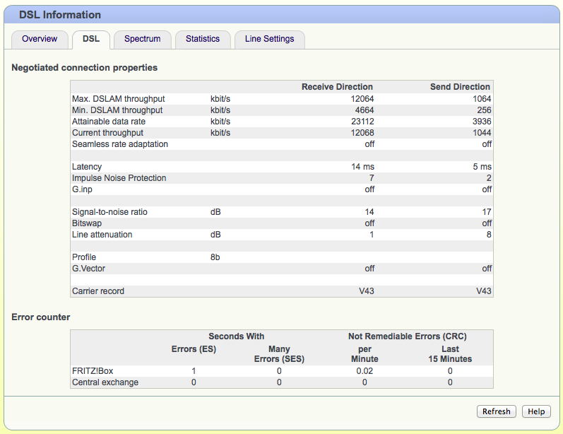 Indien een van jullie een FritzBox 7360 gebruikt op een Belgacom vectored lijn, wil je dan eens de lijnwaarden posten?
