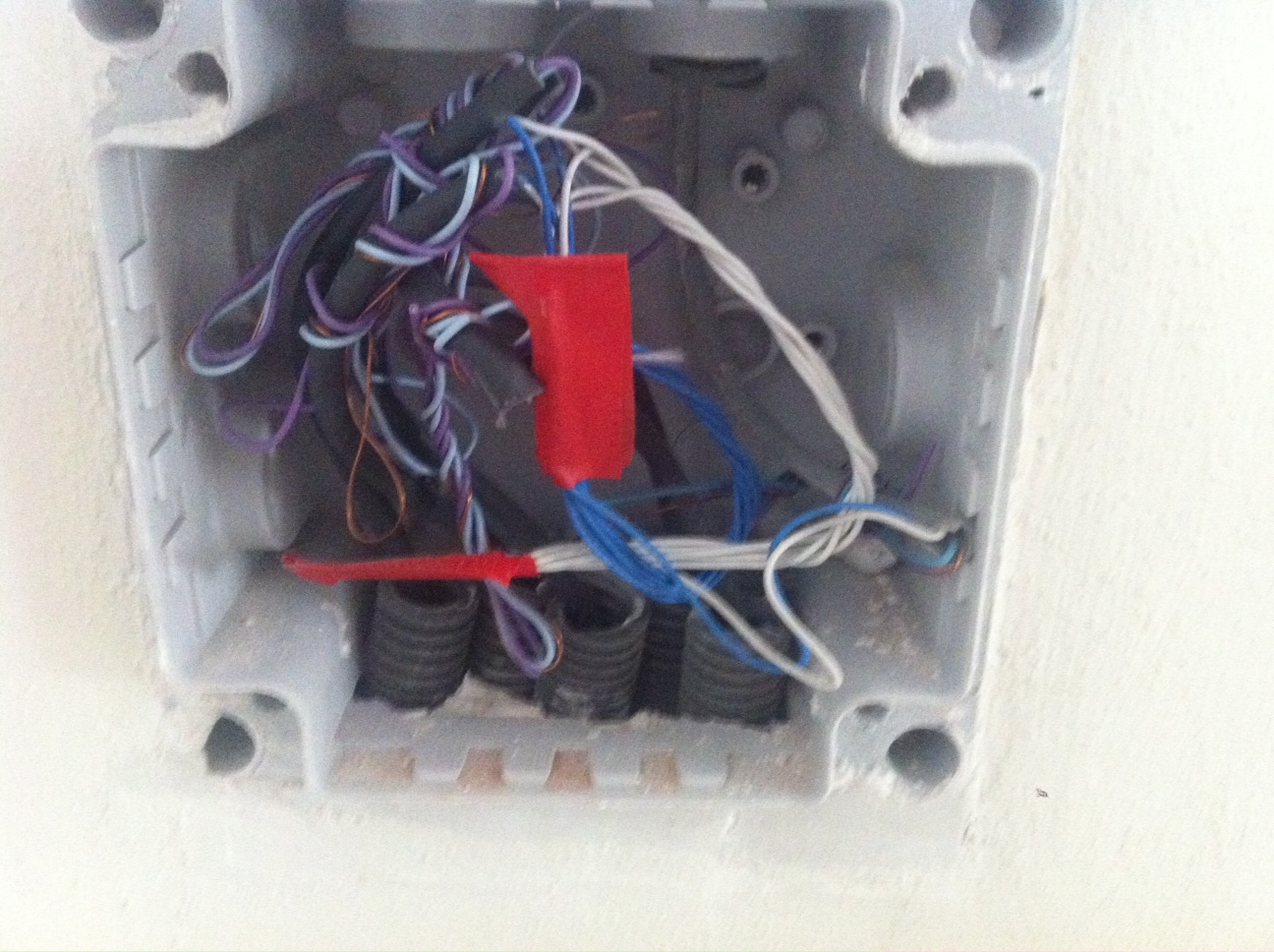 De reserve polyvinyl zwart/oranje had geen aftakking per verdiep maar werd tot de het hoogste verdieping getrokken en daar als reserve gelaten