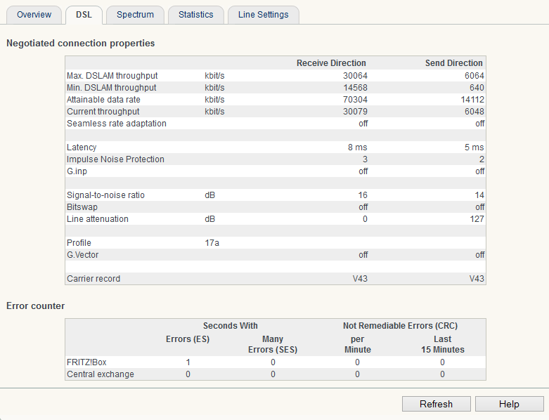 27.06.14 11:31:45 DSL is available (DSL synchronization exists with 30079/6048 kbit/s).