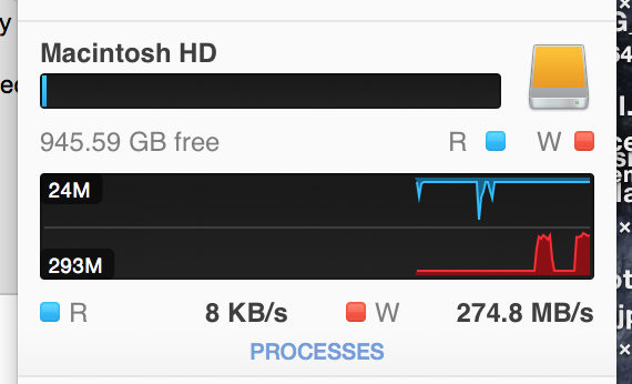 Thunderbolt tussen een mid-2012 (in target disk mode) en een mid-2014 Macbook Pro.
