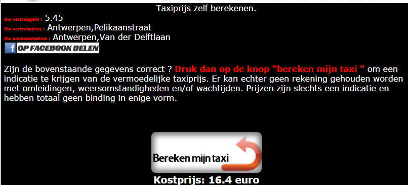 Concreet voorbeeldje hebben? Rit met officiële taxi van punt A naar punt B: 200 Euro. Taxi besteld in punt A.