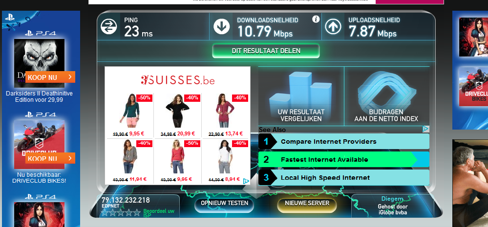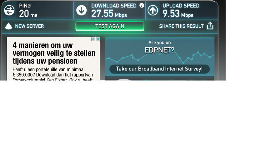 Normaal past EDPNet geen cap toe op de surfsnelheid, dus je moet bijna dezelfde snelheid krijgen als de modem synct.