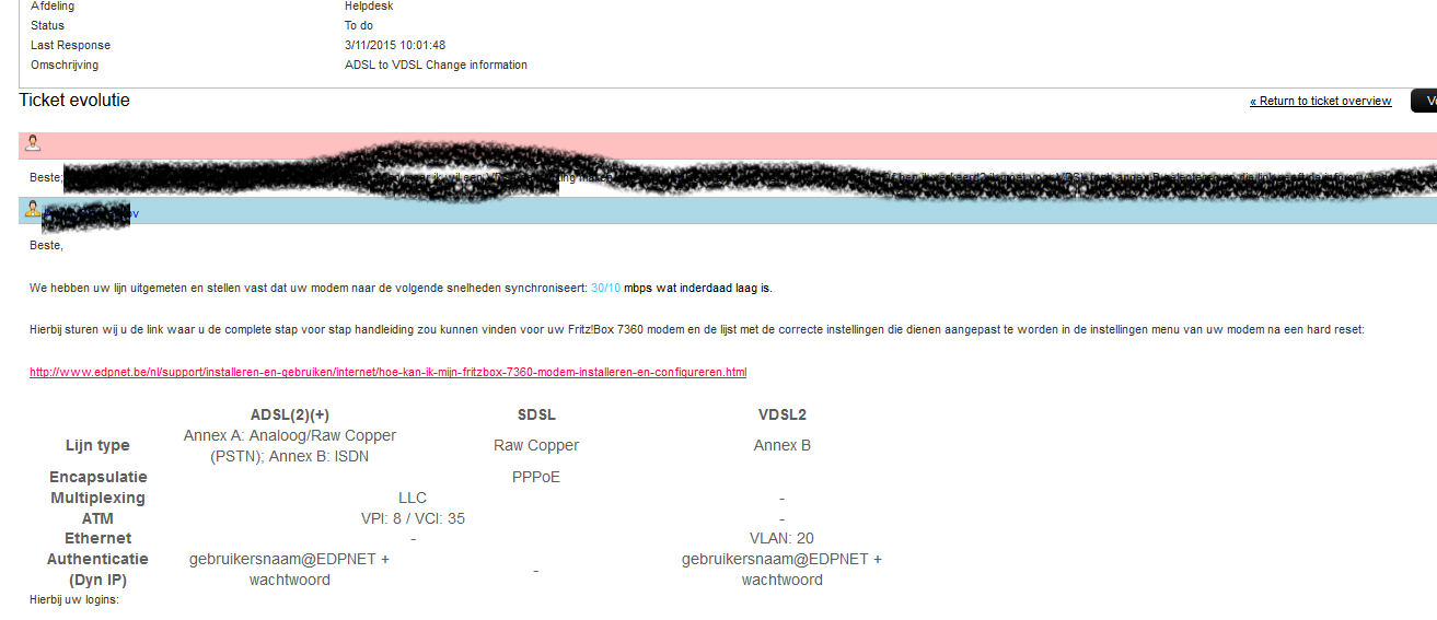 Ik heb na enkele ticket's toch al wat meer nieuws over de overschakeling van ADSL naar VDSL.
