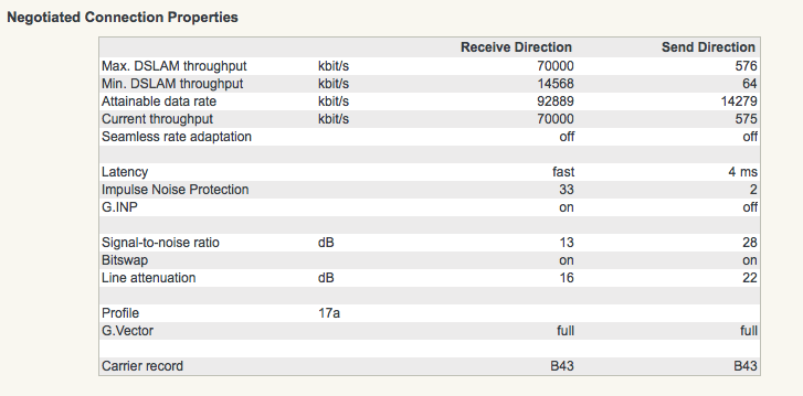 Training margin: 13.4 dB ( ik run vdsl2tool nog wel als ik eens alleen thuis ben, anders liggen internet en tv er weer uit )