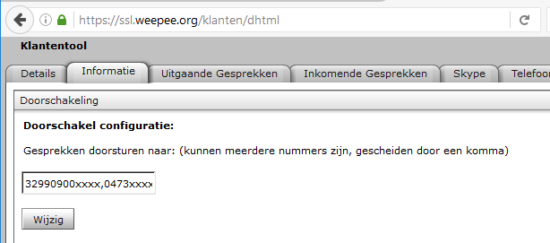 => Dit lijkt me dan bedoeld om je vast nummer naar bvb je GSM te laten doorschakelen en hierbij veronderstel ik dat je nog steeds de originele caller id kan zien.Via een Weepee forwarding-account kunt u een vaste doorschakeling van een geografisch nummer opzetten!