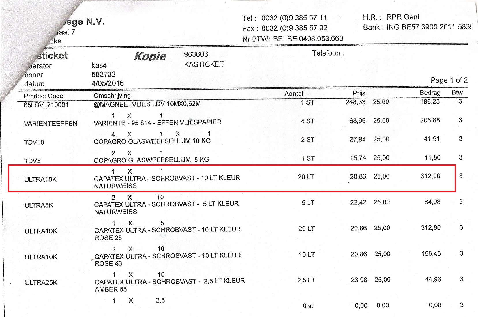 - Aangekocht bij Vandeweege NV, Begoniastraat 7, 9810 Eke) op 4 mei 2016