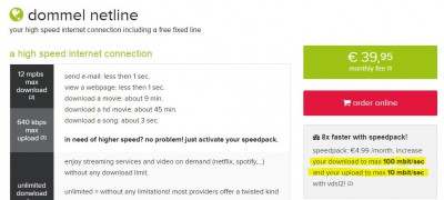 Tot voor kort adverteerden ze op hun site met 100/20 hoewel je in de praktijk nooit meer haalde dan 100/8. Nu hebben ze de geadverteerde snelheid op hun site aangepast naar 100/10 maar dat is nog altijd meer dan wat je in de praktijk krijgt (ongeacht hoe snel de modem synct).