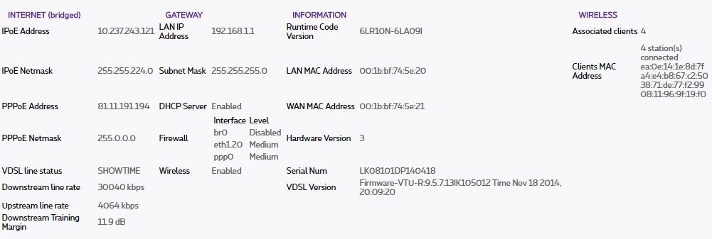 VDSL Version Firmware-VTU-R:9.5.7.13IK105012 Time Nov 18 2014, 20:09:20