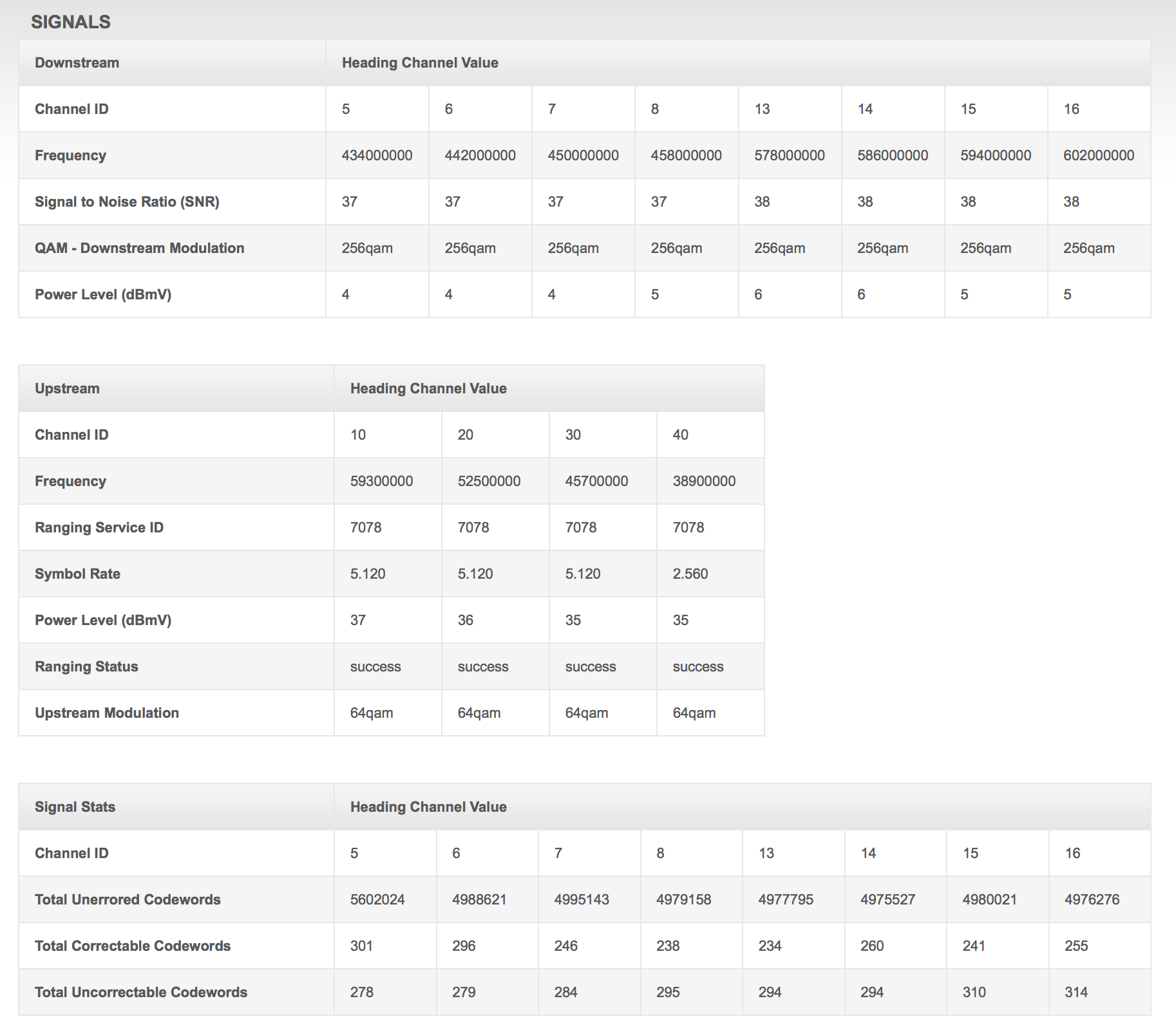 De tweedelijns-support bij Orange hield m'n connectie in de gaten, en bevestigen dat zware time-outs sinds de Telenet-interventie niet meer zijn voorgevallen. Wel heb ik op Channel ID 5 10 een pak meer uncorrectable errors dan op andere Channels (zie screenshot), maar zolang de connectie blijft werken ben ik content.