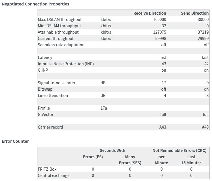 De statistics pagina in de Fritzbox toont geen schommelingen of errors (bij geen enkele uitval)