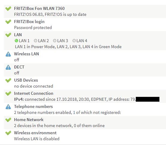 De fritzbox geeft nog steeds de melding: Telephony 1 Telephone numbers enabled, none of these registered