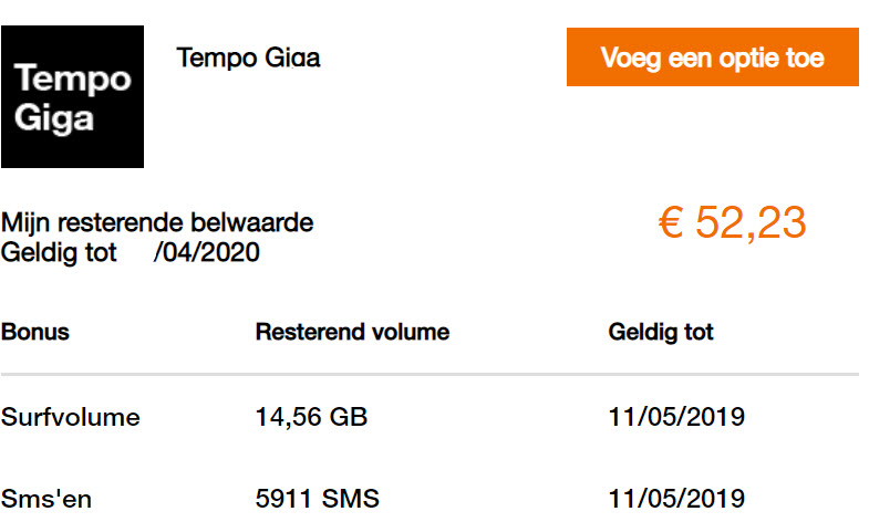 Ben al 20 jaar klant bij Orange (Mobistar) en zeer tevreden. Kijk maar eens naar Proximus: tot dubbel zo duur! Ik heb zelf ook Tempo Giga en krijg per maand 4GB erbij. Dit is ruim voldoende voor mij. Thuis gebruik ik de Orange Flybox 4G+ voor het wifi signaal naar mijn iMac en GSM. Tevreden over Orange!
