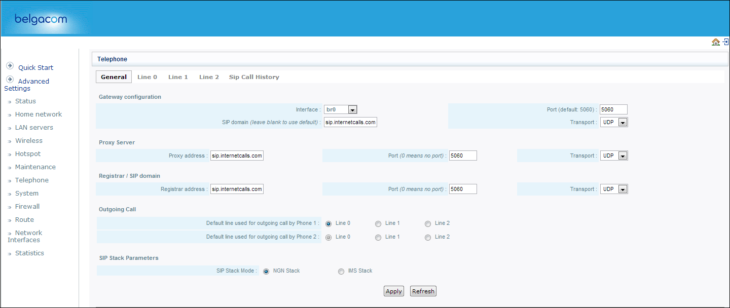 Als je telefonie kan instellen zoals de link hierboven suggereert, dan kan je inderdaad internetcalls als SIP domein instellen (zelfs beide poorten met dezelfde intercalls login, gezien dellmont meerdere registraties toelaat).raystef66 schreef:Als ik dit zowat lees dan kan VoIP enkel op de 3v+ ?