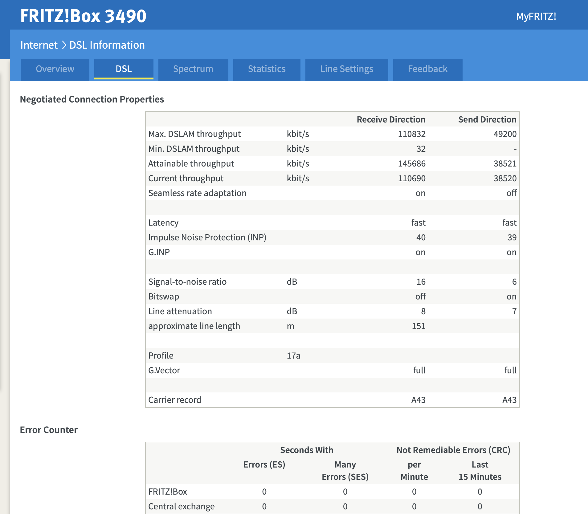 Wat opvalt is dat in het plaatje van OP seamless rate adaptation in de receive direction aanstaat. Dat heb ik nog niet eerder gezien in België. Als gevolg hiervan wordt er een download throughput gehanteerd die dicht tegen de Max DSLAM throughput aanligt.