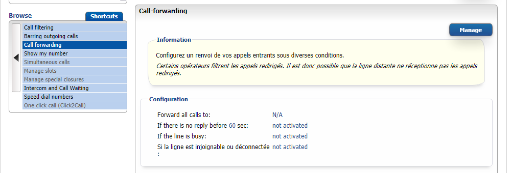 In "Configuration du répondeur" -> "Accueil et enregistrement des messages" van de instellingen in de manager staan volgende relevante settings: