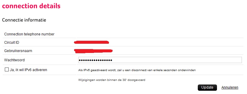 Nu valt me op dat de informatie bij 'Connection telephone number' leeg is: