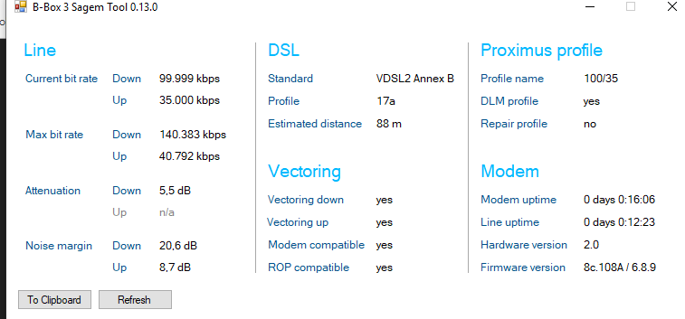 Vraagje, vandaag merk ik dat mijn internet zeer traag gaat (10 ~~ 12 Mbit) volgens de bboxtool zit ik nog steeds op een 100/30 profiel.