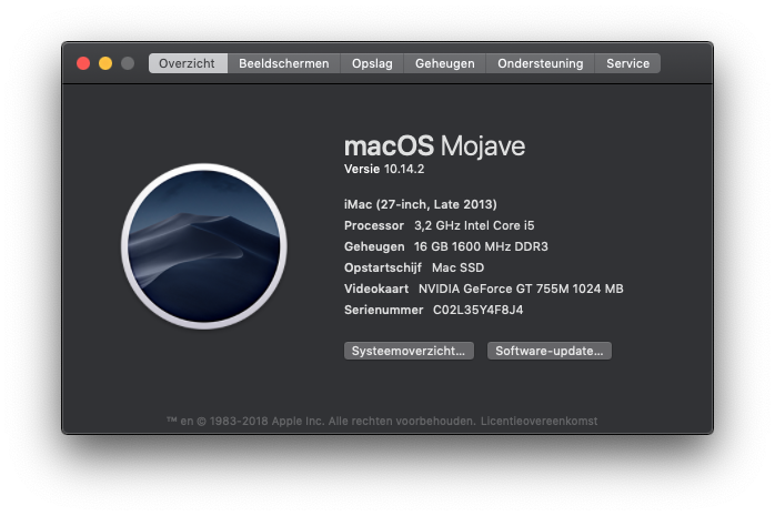 macOS Mojave - Apple Keyboard met numpad - Mighty mouse - USB DVD reader (Apple Magic mouse kan voor 25 euro extra)