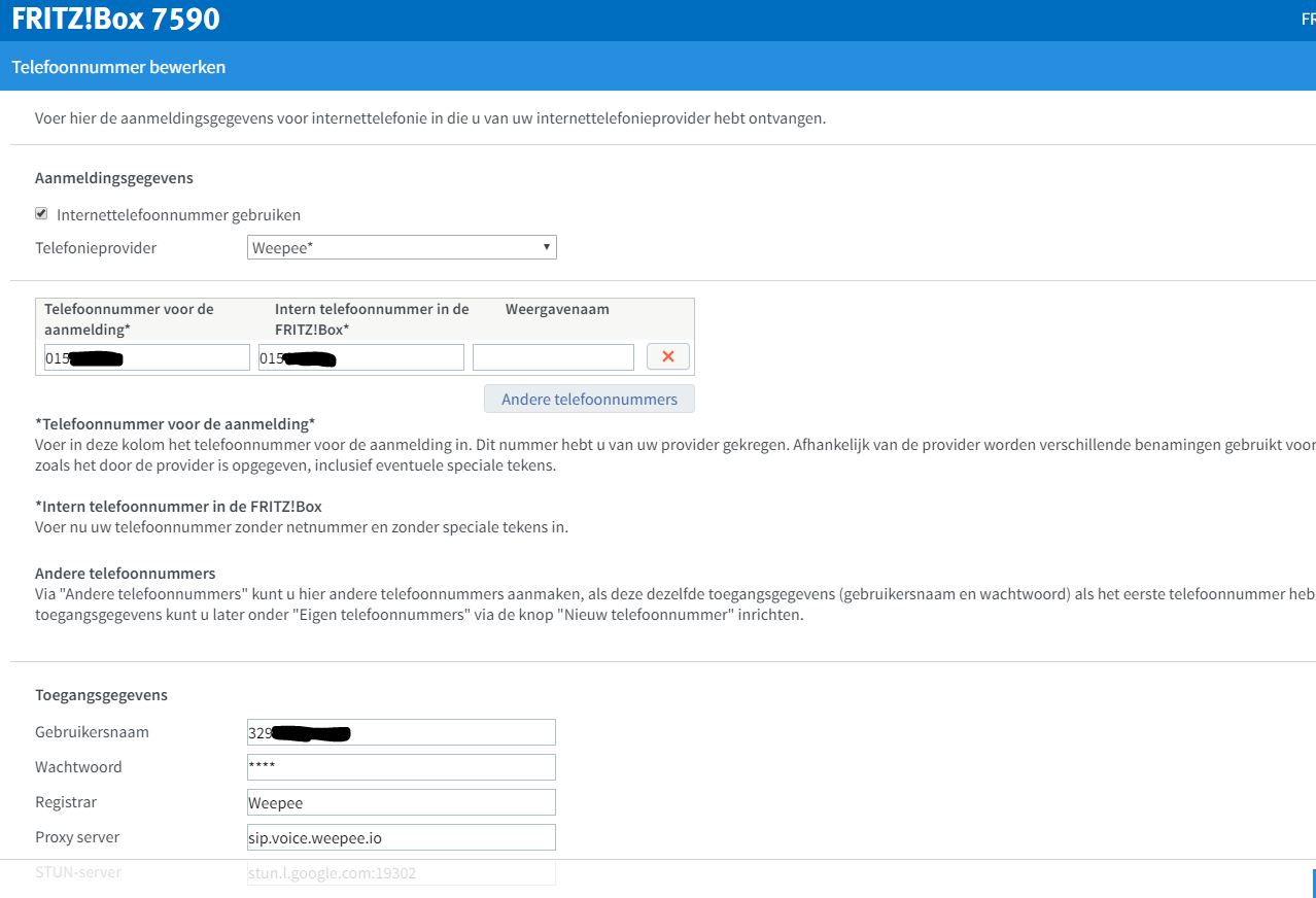 Hierbij de configuratie van mijn telefoonnummer bij WeePee.
