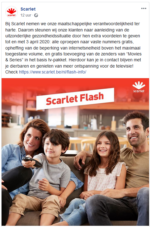 Ook Orange Belgium doet een geste. De operator zal al zijn residentiële en zakelijke postpaidklanten gratis 5GB aan mobiel datavolume aanbieden "om ervoor te zorgen dat ze altijd en overal verbonden kunnen blijven". Klanten krijgen volgende week meer informatie over dit extra volume.