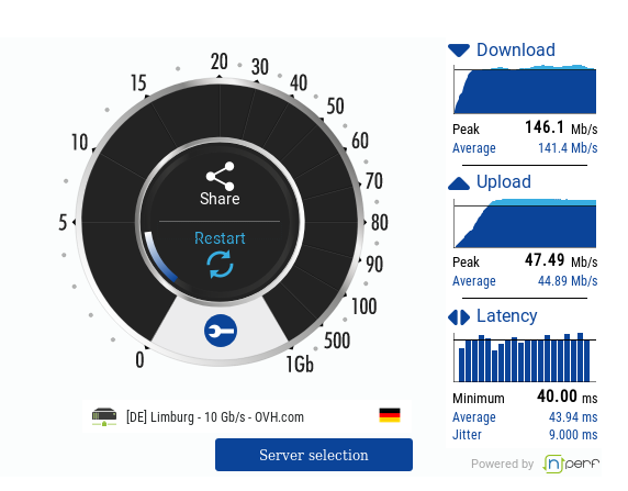 Ping steeg na het overschrijden van de 150GB wel dramatisch (180ms).