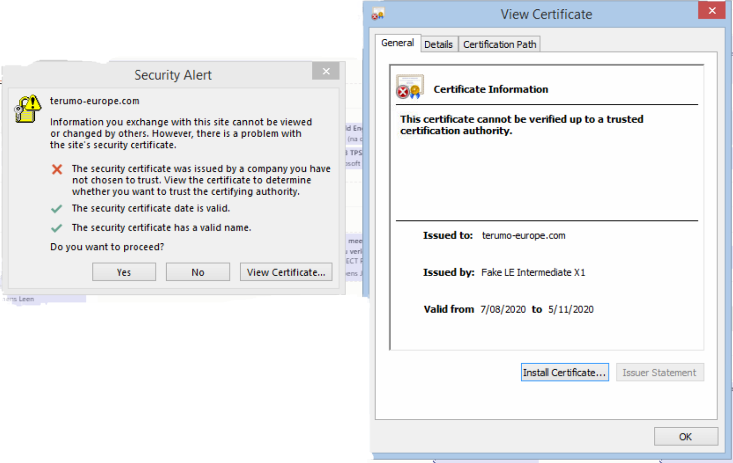ik krijg trouwens nergens op geen enkele manier een fake LE cert, dus lijkt me dat er ergens nog iets anders speelt bij je verbinding ook?