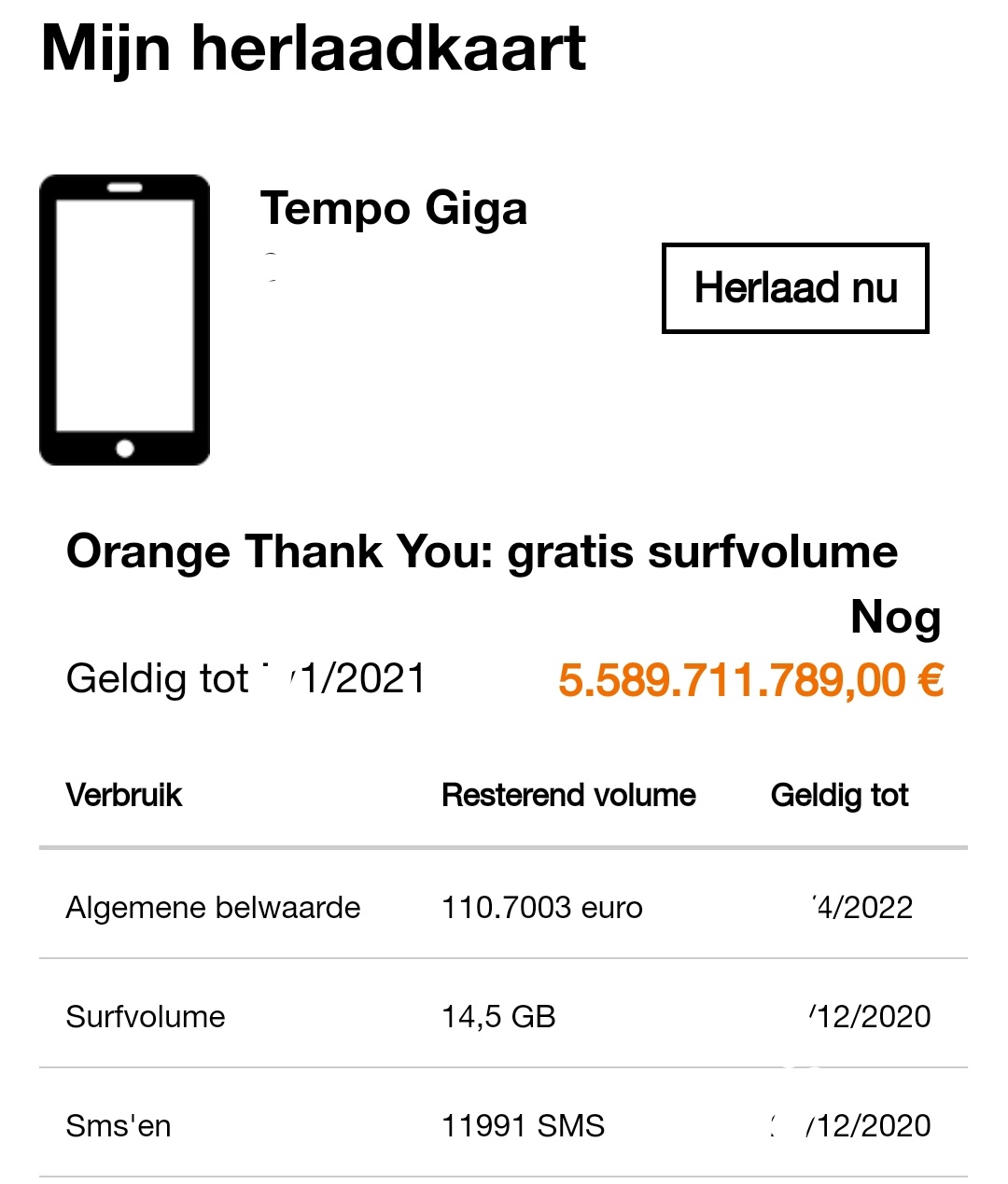 Ff. paar keer 15€ herladen tot maximum. en dan 10€/maand. En beltegoed kan gebruikt worden voor diverse doeleinden (Tomtom/Tado abbo/gplay store apps,...). Af en toe gratis data, en gratis kinepolis tickets die je niet kan opgebruiken. VoWifi & VoLTE en gratis bellen nr. Tempo Gigaklanten. Ook gratis data weggeven aan iemand in groep.