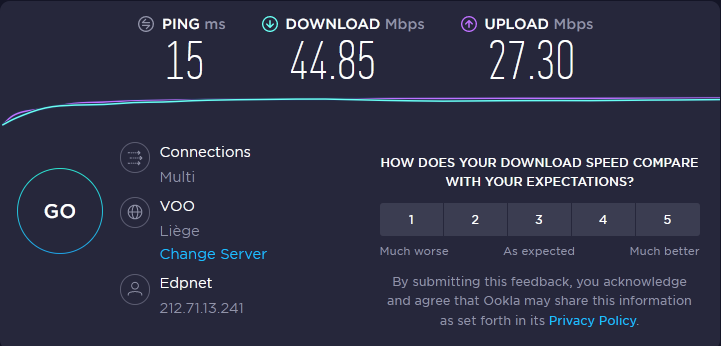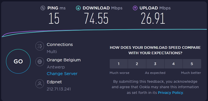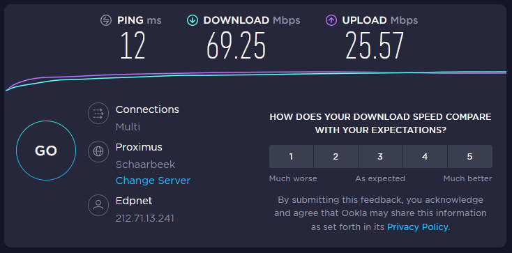 Dat is al een stuk beter, maar nog altijd trager dan wat ik weet dat ik kan halen. Laten we die van telenet eens proberen: