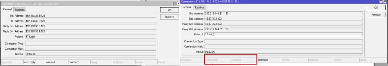 De MT client stuurt niet enkel een NTP packet uitgaand op poort 123, maar verwacht ook z'n antwoord terug