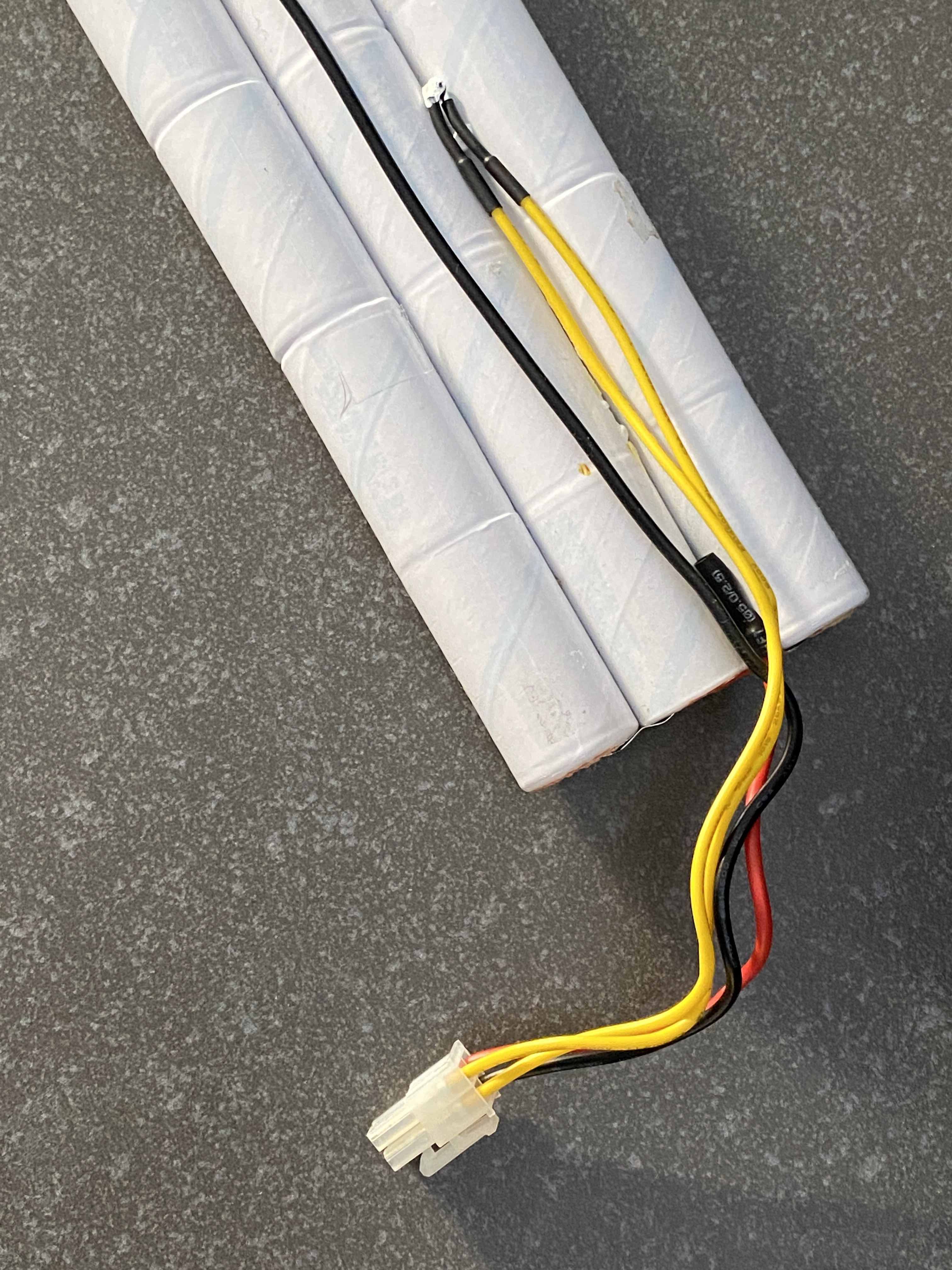 Ik denk dat dat wel kan ja. Veel laadelektronica zit er bij NiMh batterijen doorgaans niet in, de laadtoestand wordt volgens mij gewoon door klemspanning bepaald. De gele zal inderdaad wel een temperatuursensor zijn, en dat onderste is volgens mij een PTC die als zekering gebruikt wordt.