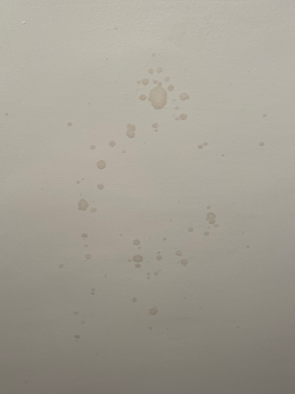 Er is nog wel een groot probleem en dat is het volgende: op het velours behang waren van tevoren enkele vlekken duidelijk zichtbaar maar deze zijn nog steeds aanwezig zelf na het plaatsten van de primer en twee lagen verf. ( zie bijgevoegde foto).