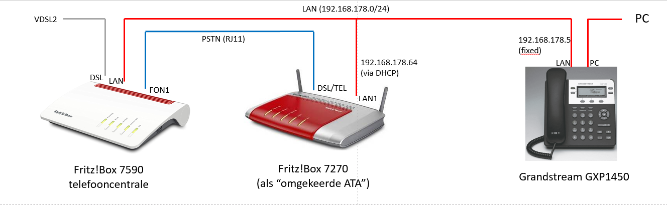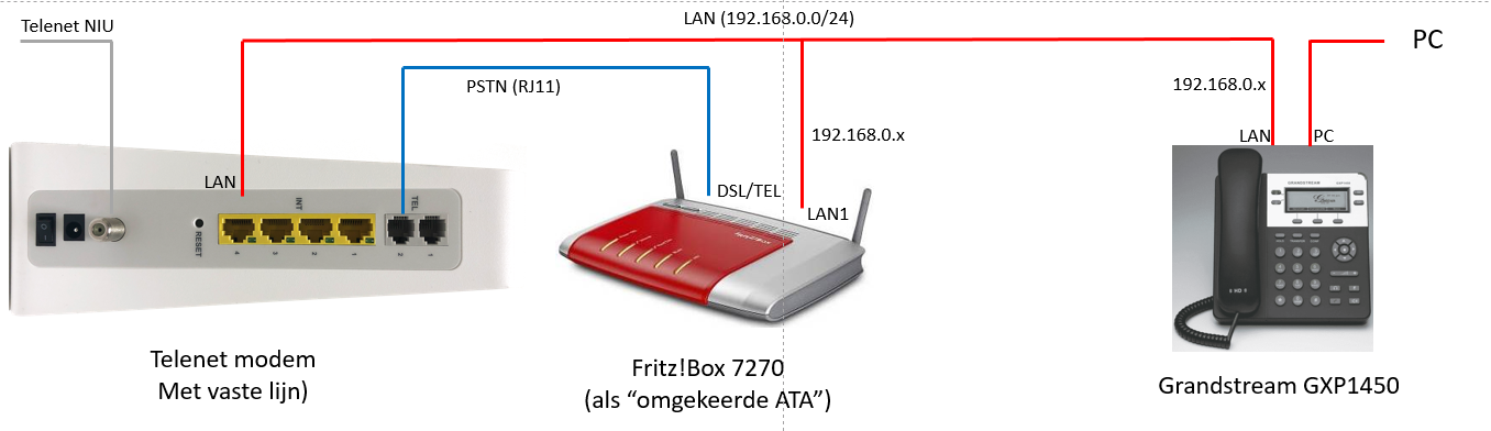 . - FritzBox 7272 ("omgekeerde ATA") en Grandstreal staan op het lokale netwerk.