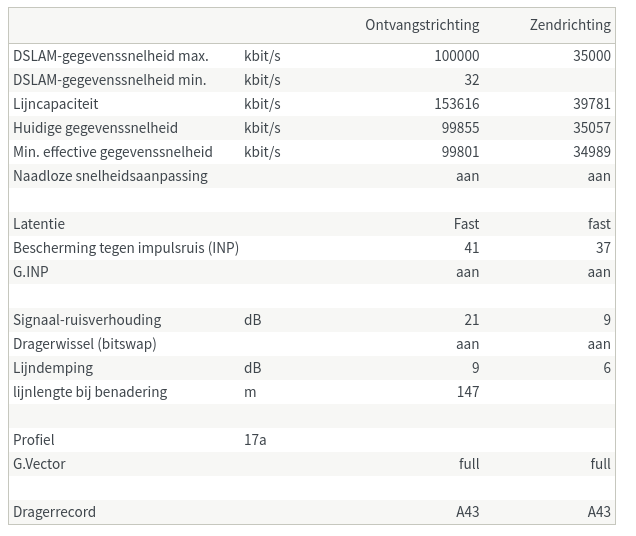 Modem heeft volgende lijnwaarden. Voorzover ik er iets van ken en in vergelijking met voorgaande zie ik niet direct grootse veranderingen: